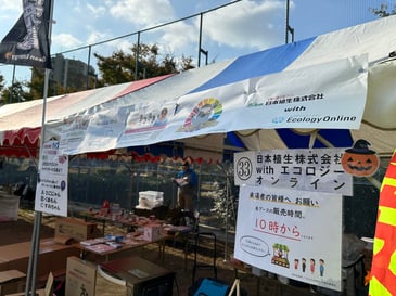 エコロジーオンラインは日本植生㈱と共同で、大阪市の「すみよし区万博・第49回すみよし区民まつり」に出展し、環境負荷低減とSDGsな防災を啓発しました。