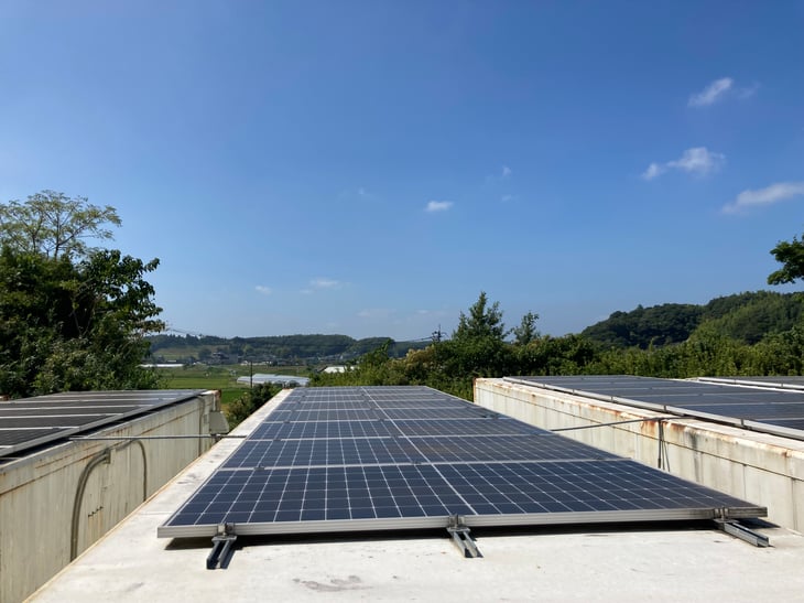 エコロジーオンライングループの里山エネルギー株式会社と日本植生株式会社がコーディネートを担当。国産アモルファスシリコンをコアテック株式会社が加工しています。